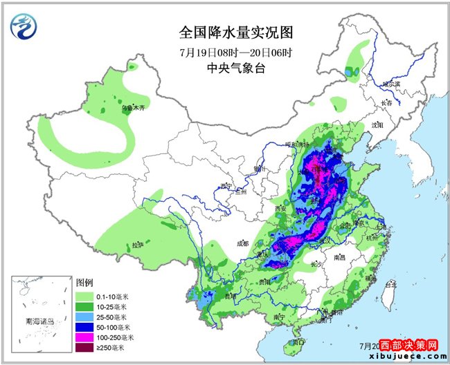 19日,一條強(qiáng)降雨縱貫中東部,山西東部、河北中南部、北京西南部、山東西部、河南北部和南部及湖北中部和西南部、湖南西北部、貴州東北部等地出現(xiàn)大暴雨,河北西南部及河南安陽和南陽、山西陽泉和晉中、湖北荊門、隨州和恩施、貴州銅仁等地部分地區(qū)出現(xiàn)特大暴雨,河北石家莊市平山、井陘和贊皇、邢臺(tái)市臨城和內(nèi)邱、邯鄲涉縣和磁縣、河南安陽林州、湖北荊州京山等局地降雨400~616毫米,上述局地1小時(shí)最大降雨100~140毫米。