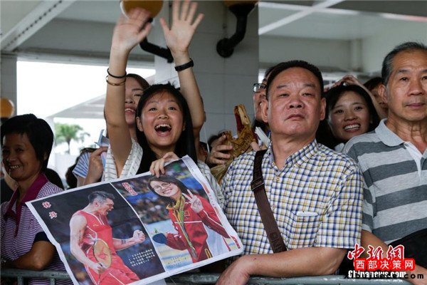 8月29日,里約奧運(yùn)會(huì)國(guó)家?jiàn)W運(yùn)精英代表團(tuán)抵達(dá)澳門,展開一連4天的訪問(wèn)行程,與澳門市民近距離交流。 中新社記者 張宇 攝