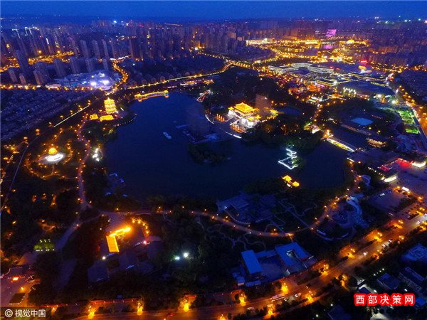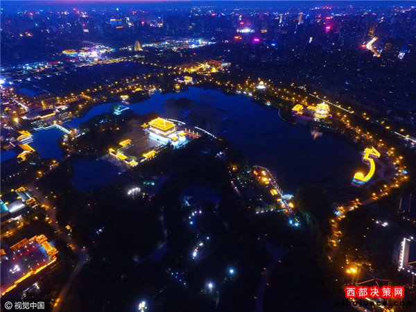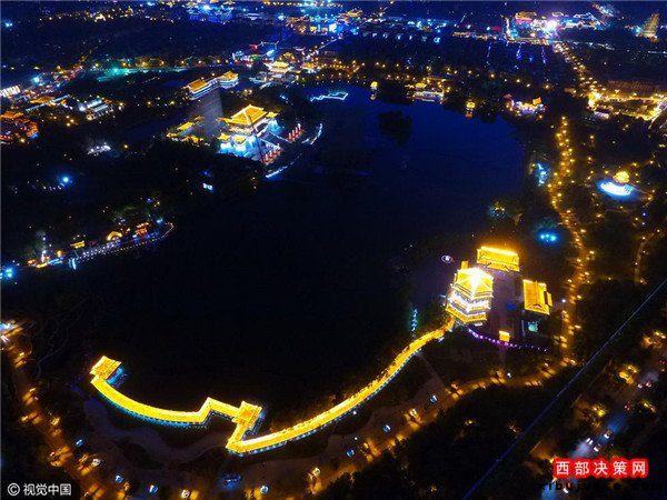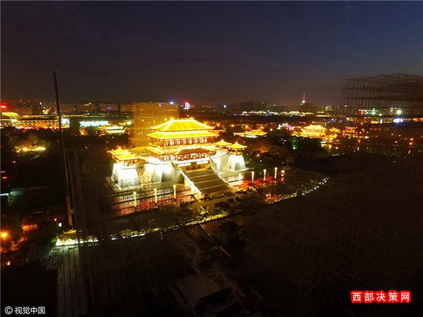 2016年08月30日,陜西省西安市,中央電視臺中秋晚會西安大唐芙蓉園分會場正在緊張布置中。記者從利用無人機,分別航拍到大唐芙蓉園白天與夜晚的壯美風景,如同一幅美麗畫卷,等待著中秋佳節(jié)的到來。