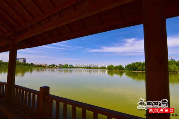 9月4日,“文博會網(wǎng)絡(luò)宣傳周”采訪團75家媒體近百名記者一行走進蘭州新區(qū)時,就被碧波蕩漾的2號湖濱區(qū)所吸引,湖邊盛開著紅的、黃的、紫的鮮花,湖里隱約可見各種彩色的錦鯉,游人或愜意地在湖邊垂釣,或聚集在觀景臺欣賞音樂噴泉,或悠然自得地泛舟湖上。