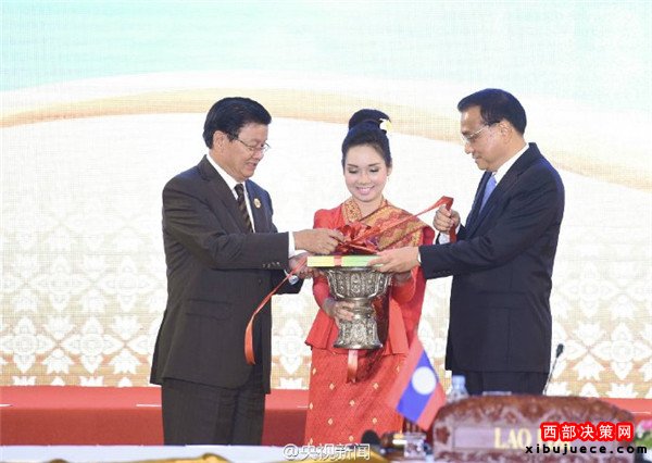 李克強總理7日同東盟10國領導人在老撾萬象共同出席中國—東盟建立對話關系25周年紀念儀式。觀看紀錄短片、發(fā)布對話合作事實與數(shù)據手冊后,李克強與東盟主席國老撾總理通倫、中國東盟關系協(xié)調國新加坡總理李顯龍在與會各國領導人見證下一起切蛋糕。