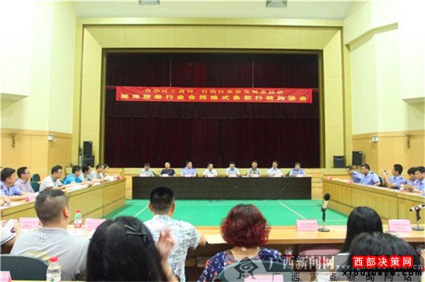為進(jìn)一步依法維護(hù)旅游經(jīng)營(yíng)企業(yè)及旅游消費(fèi)者合法權(quán)益,積極發(fā)揮部門間的監(jiān)管合力,提高旅游市場(chǎng)監(jiān)管效能,提升企業(yè)誠(chéng)信守法意識(shí),維護(hù)良好的旅游市場(chǎng)秩序,促進(jìn)廣西旅游產(chǎn)業(yè)健康發(fā)展,9月28日,規(guī)范旅游行業(yè)合同格式條款行政約談會(huì)在南寧召開(kāi)。