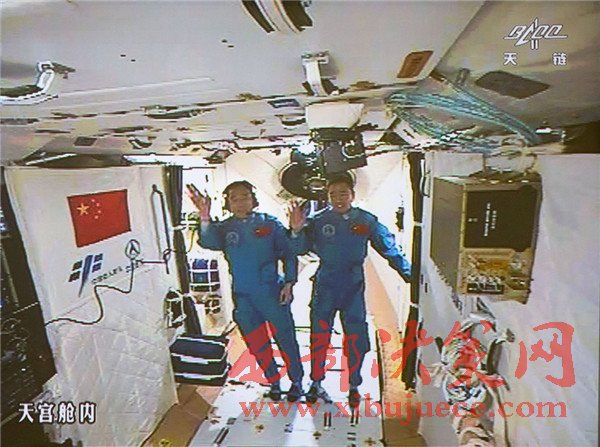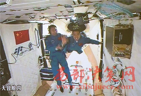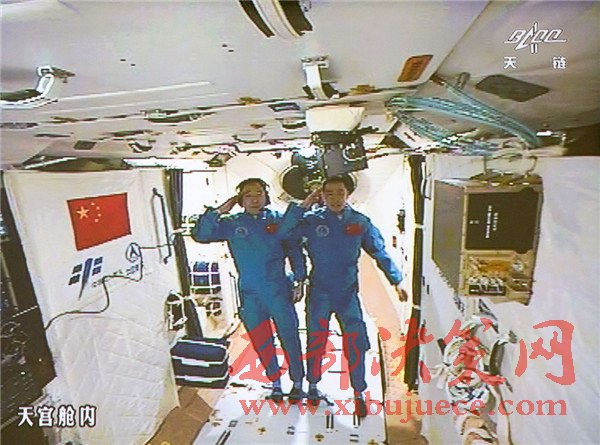 10月19日,神舟十一號航天員景海鵬和陳冬順利進(jìn)入天宮二號實(shí)驗艙。景海鵬(左)和陳冬在天宮二號實(shí)驗艙向全國人民問好并敬禮(攝于北京航天飛行控制中心大屏幕)。