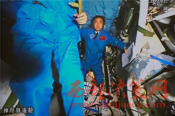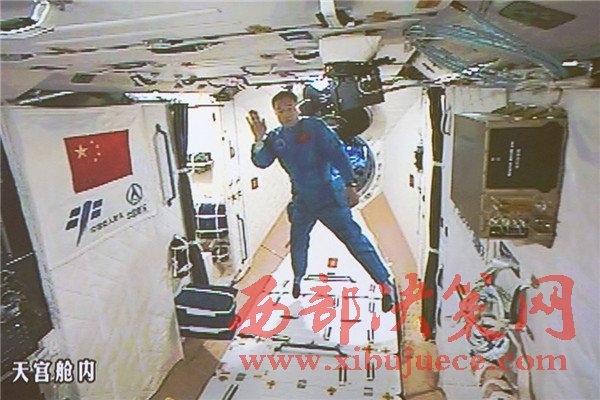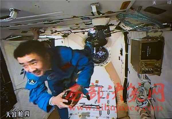 10月19日,神舟十一號航天員景海鵬和陳冬順利進(jìn)入天宮二號實(shí)驗艙。這是景海鵬進(jìn)入天宮二號實(shí)驗艙(攝于北京航天飛行控制中心大屏幕)。