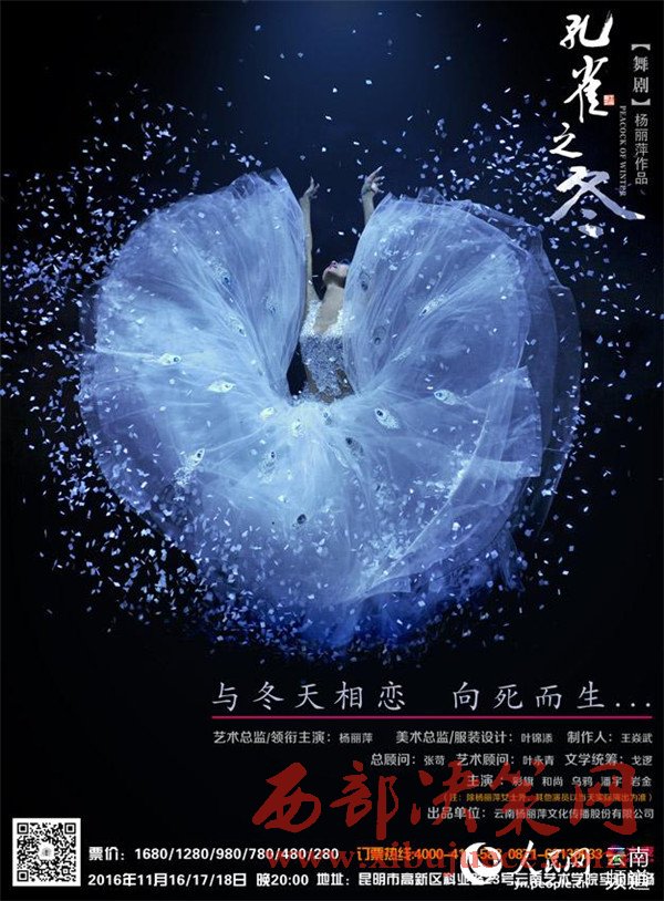 10月25日,由楊麗萍領(lǐng)銜主演并擔(dān)任藝術(shù)總監(jiān)的舞劇《孔雀之冬》在中航·璽樾舉行全球發(fā)布會?!犊兹钢穼⒂?1月16日至18日在云南藝術(shù)學(xué)院實驗劇場(麻園)進行公演,拉開全國巡演的序幕。時隔4年,在2012版舞劇《孔雀》之后,舞神楊麗萍將再次起舞。