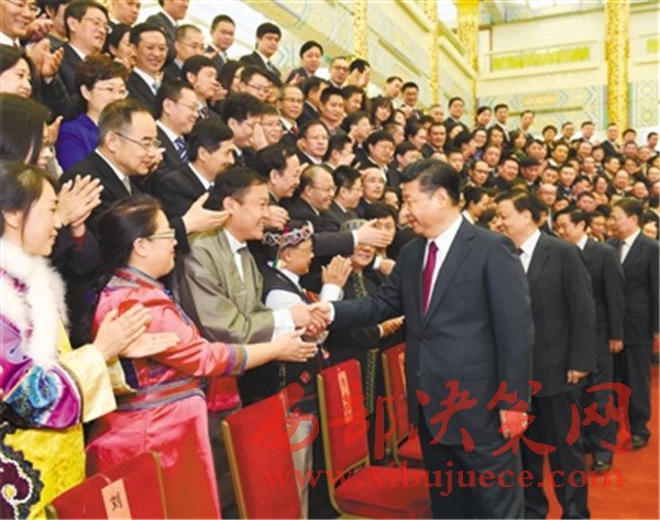 上午9時(shí)30分,習(xí)近平等來(lái)到人民大會(huì)堂金色大廳,同代表們親切握手,并合影留念。