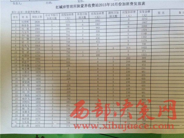 紀(jì)委王姓負(fù)責(zé)人告訴西部大開發(fā)雜志社記者菜價偏高確實(shí)從在,人已經(jīng)換掉,正在調(diào)查中,他們公司并未下過處罰,也未發(fā)現(xiàn)篡改考勤一事,不存在套取國家國有資金,并且給西部大開發(fā)雜志社記者拿出一塔資料,這就是陜蒙界收費(fèi)站的考勤表,西部大開發(fā)雜志社記者看到考勤表上確實(shí)沒有任何涂改痕跡,其中陜蒙界收費(fèi)站劉站長的上班天數(shù)也是23天。西部大開發(fā)雜志社記者想要查看工資發(fā)放表格時,得到結(jié)果還是無權(quán)了解。