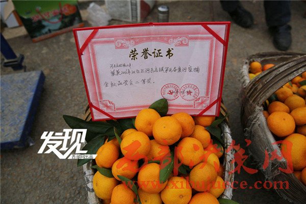 張小平家的橘子在鎮(zhèn)上舉行的褒河蜜橘金秋品嘗會獲得二等獎,張小平把獎狀擺在了他的橘子攤上。張小平說,他家有6畝橘園,收入6萬元不成問題。