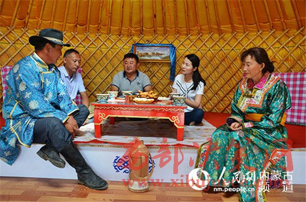 人民網(wǎng)記者在巴圖孟克開辦的草原牧家樂蒙古包內采訪