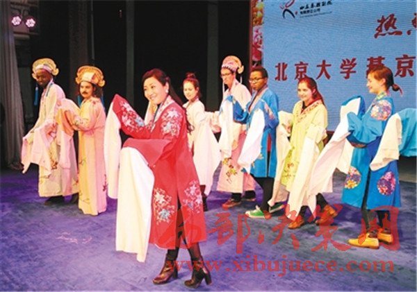臺下就座的,則是一群特殊的學(xué)生——北京大學(xué)燕京學(xué)堂的來自42個國家和地區(qū)的學(xué)生們,他們把易俗社小劇場坐得滿滿當(dāng)當(dāng)。在英語翻譯的配合下,秦腔這種中國非物質(zhì)文化遺產(chǎn)的精髓被一點(diǎn)點(diǎn)輸入他們的腦海。
