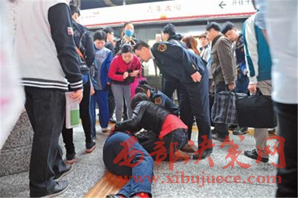 2015年5月13日早高峰時間段,沈陽地鐵1號線青年大街站站臺,一名74歲的老人在人群中因擁擠而摔倒。老人對涉事人說:“我有老保,我不訛人”。