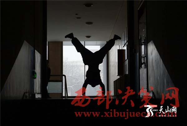11月20日,烏魯木齊的氣溫低至零下十五度,天空中還飄著雪花。新疆農(nóng)業(yè)大學(xué)禮堂內(nèi)卻暖意融融,不時(shí)傳來掌聲與喝彩聲。只見一名男生飛快地上板、蹬腳、滑行、起跳、轉(zhuǎn)彎、落地……短短幾十秒內(nèi),完成了一整套平地自由花式動(dòng)作。待他走下場地,周圍的學(xué)生紛紛迎上去,一一和他擊掌表示祝賀和鼓勵(lì)。