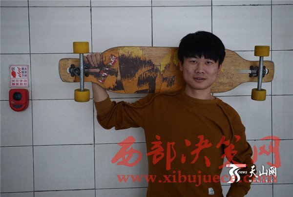這名男生叫田澤林,正在新疆農(nóng)業(yè)大學(xué)讀大三,他同時(shí)還是新疆農(nóng)業(yè)大學(xué)libero滑板社的創(chuàng)始人之一。田澤林介紹,滑板是一種街頭文化,又是一項(xiàng)極限運(yùn)動(dòng),能讓人感受到生命的力量。傳統(tǒng)的滑板文化是人們挑戰(zhàn)自我熱愛生活的態(tài)度,當(dāng)身體隨著滑板騰空而起的時(shí)候,那感覺讓人心醉。所以,當(dāng)初給滑板社取名的時(shí)候,大家不約而同想,這個(gè)名字要具有力量性、挑戰(zhàn)性、自由性、時(shí)尚性。經(jīng)過再三討論,libero誕生。