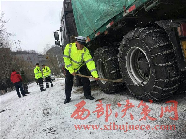 21日夜間,20余輛半掛車進山,行至冰雪路面無法前行,滯留在路邊,導(dǎo)致道路擁堵。為進一步加強路面管控,渭濱大隊迅速啟動《冰、雪、雨、霧自然災(zāi)害等特殊氣候條件下道路交通安全保障應(yīng)急處置預(yù)案》,從22日早上7點開始,對四軸以上半掛車進行交通管制。同時,渭濱交警大隊,鳳縣交警大隊黃牛埔中隊迅速聯(lián)系路政部門,對積雪路段采取拋灑融雪劑、防滑沙等措施。對部分滯留車輛大隊民警已第一時間趕赴現(xiàn)場進行疏導(dǎo),并送去了熱水和食品,并從秦嶺兩端。
