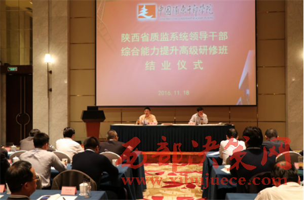 西部決策網(wǎng)訊11月14日至18日,陜西省質(zhì)監(jiān)系統(tǒng)領(lǐng)導(dǎo)干部綜合能力提升高級(jí)研修班在中國浦東干部學(xué)院成功舉辦。共有來自陜西省質(zhì)監(jiān)局機(jī)關(guān)各處室、直屬各單位和各市級(jí)、府谷縣、神木縣局共40名領(lǐng)導(dǎo)干部參加了培訓(xùn)學(xué)習(xí)。此次為期5天的研修班,著眼于提升陜西省質(zhì)監(jiān)系統(tǒng)干部的綜合素質(zhì)和領(lǐng)導(dǎo)能力,為實(shí)現(xiàn)質(zhì)監(jiān)部門服務(wù)大局能力水平的新提升和服務(wù)發(fā)展效果的新提升提供更加堅(jiān)強(qiáng)的思想政治和組織保證。陜西省質(zhì)監(jiān)局黨組書記、局長喬軍出席結(jié)業(yè)儀式并發(fā)表重要講話。省局黨組成員、副局長李晉利出席開班儀式作動(dòng)員講話,并全程參加培訓(xùn)學(xué)習(xí)。