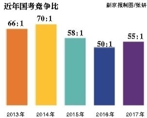 從招錄比看,平均55人競(jìng)爭(zhēng)1個(gè)崗位。其中,競(jìng)爭(zhēng)最激烈的崗位為民盟中央辦公廳“接待處主任科員及以下”一職,在截至報(bào)名結(jié)束前半小時(shí)競(jìng)爭(zhēng)比就達(dá)9837:1,超過(guò)2013年度國(guó)考最熱職位的9411:1,創(chuàng)下歷史新高。