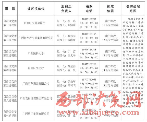 本輪巡視從12月初開始至2017年1月20日結(jié)束,自治區(qū)黨委7個(gè)巡視組將采取“一對(duì)一”方式對(duì)2個(gè)自治區(qū)政府工作部門、1所高校和4家自治區(qū)管理國有企業(yè)開展專項(xiàng)巡視。