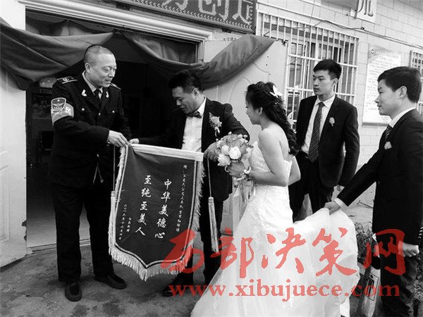 12月4日上午,一輛婚車(chē)突然開(kāi)進(jìn)西安市辛家廟公交樞紐站,新郎白磊和新娘房佳歡將一面寫(xiě)有“中華美德心至純至美人”字樣的錦旗,送到了211路司機(jī)李軍紅手中,這一新鮮場(chǎng)面頓時(shí)引起了眾人圍觀。