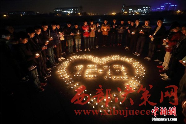 12月12日晚,在第三個(gè)國家公祭日前夜,主題為“愿逝者安息,為生者祈福”的燭光祭活動(dòng)在南京東南大學(xué)九龍湖校區(qū)內(nèi)舉行,來自該校機(jī)械工程學(xué)院的大學(xué)生們點(diǎn)燃蠟燭,擺放成心形和1213字樣,為南京大屠殺死難者集體默哀,寄托哀思。