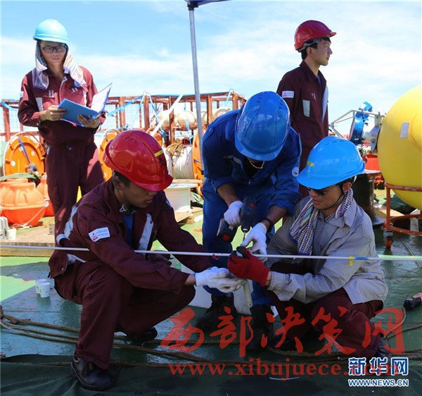 科考隊員在進行深海潛標布放和回收作業(yè)培訓(11月12日攝)。我國遠洋綜合考察船“科學”號正在西太平洋執(zhí)行潛標觀測網(wǎng)維護與升級任務。截至目前,科考隊員已獲取了140余件觀測設備連續(xù)1年的現(xiàn)場數(shù)據(jù),維護了8套深海潛標,并重新布放至西太平洋海域。