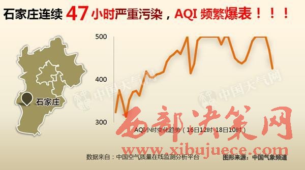 其中,從16日起,河北石家莊更是出現(xiàn)了連續(xù)47小時的嚴(yán)重污染,AQI指數(shù)頻繁“爆表”。