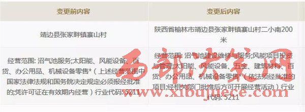 蹊蹺的是,一年半之后的2015年3月18日,靖邊興發(fā)公司突然變更了業(yè)務范圍。將原來的"沼氣池服務”,增加了四個關鍵字“建設維修”,最終變更成了“沼氣池建設維修與服務”。