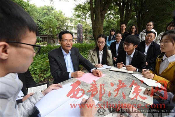 “今天來到這里,看到大家朝氣蓬勃的精神面貌,讓我回想起了38年前的大學(xué)時光。作為廣西本土培養(yǎng)的大學(xué)生,我與時代共同成長,也見證了廣西改革發(fā)展歷程。”陳武親切的開場白,迅速拉近了和青年學(xué)子們的距離。