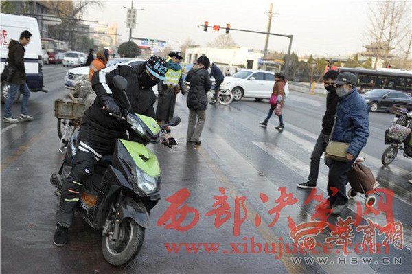 站在路口指揮疏導的交警碑林大隊文藝路中隊中隊長馮侃說,受氣溫降低影響,清晨時分路面易結冰,過往車輛務必注意路況,尤其要保持車距,“同時也需要提醒行人和非機動車,通過路口時務必觀察后通行,以免發(fā)生意外。”