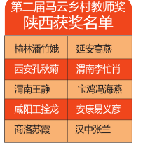 馬云公益基金會2016年6月15日公布第二屆馬云鄉(xiāng)村教師獎(jiǎng)入圍名單,13省市區(qū)300位入圍老師中,陜西9地市有30人入圍。之后,13個(gè)省開始進(jìn)行各省初評,陜西省初評由三秦都市報(bào)全媒體組織,并采訪報(bào)道。經(jīng)過陜西初評、復(fù)評,以及全國復(fù)評。2017年1月5日晚,100位獲獎(jiǎng)老師名單出爐,其中陜西有10位老師獲獎(jiǎng)。首屆有陜西等6省參評,陜西有17位老師獲獎(jiǎng)。