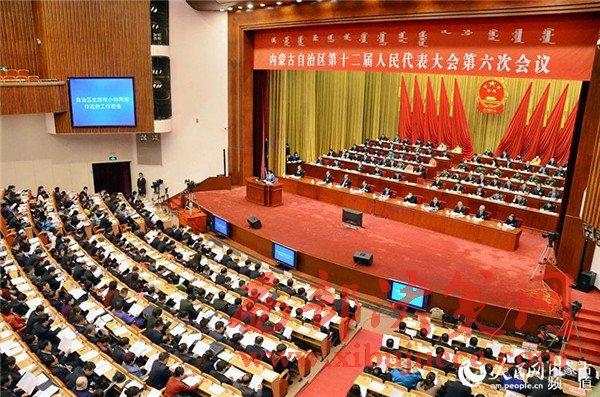 上午9時(shí),李紀(jì)恒宣布:內(nèi)蒙古自治區(qū)第十二屆人民代表大會(huì)第六次會(huì)議開幕。會(huì)場(chǎng)全體起立,高唱國歌。