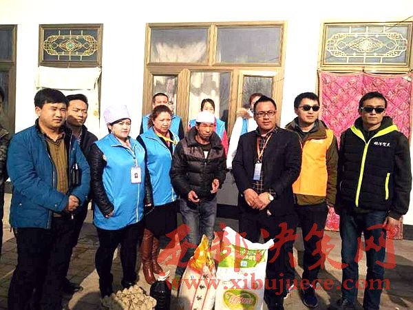 1月13日,寧夏海興義工聯(lián)合會銀川辦事處的工作人員來到銀川市賀蘭縣南梁臺子鐵東村、鐵西村,慰問當(dāng)?shù)?戶孤寡貧困家庭,捐贈米面油和棉衣等生活物品,  “大娘,還有半個月就過年了,這是咱們企業(yè)的一點心意,祝您老身體健康,吉祥如意”。這次慰問空巢老人和貧困家庭的單位有:銀川培訓(xùn)學(xué)院、銀川美年大健康體檢醫(yī)院、海原馬軍飯莊、搏港旅游公司、寧夏雙玉農(nóng)業(yè)科技有限公司、寧夏塞杞源苗木專業(yè)合作社。今年年初,他們根據(jù)南梁臺子鄉(xiāng)提供的貧困戶名單,結(jié)合入戶走訪,最終確定了馬寶林、馬萍霞等8戶殘疾、孤寡貧困家庭。由寧夏蕊杰伯港旅游有限公司、 銀川美年大健康體檢醫(yī)院等7家協(xié)會成員企業(yè)共同出資購買生活物品,逐戶慰問,反哺社會。