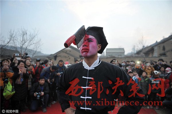 2017年2月3日,陜西隴縣東南鎮(zhèn)閆家庵村,一場(chǎng)“血社火”的表演正在進(jìn)行中。今年春節(jié),閆家庵村從大年初五開始連續(xù)三天進(jìn)行血社火表演,當(dāng)日是最后一天。