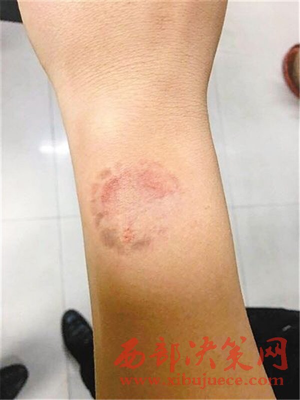 中隊民警翟偉、秦偉在將楊某帶離車輛的過程中,楊某突然咬住民警翟偉的左手腕處,經(jīng)民警現(xiàn)場多次警告仍不松口,在隨行輔警等人協(xié)助下,最終將楊某帶離車輛進(jìn)行了尿液檢測,而民警翟偉的左手腕處卻留下了清晰的牙印。