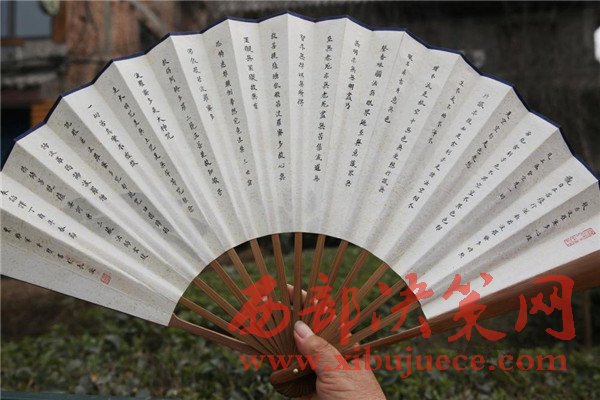 這名長發(fā)先生被賈維軍的精神打動,用100元買了一把賈維軍的書法折扇。