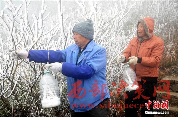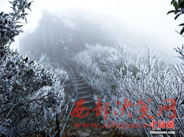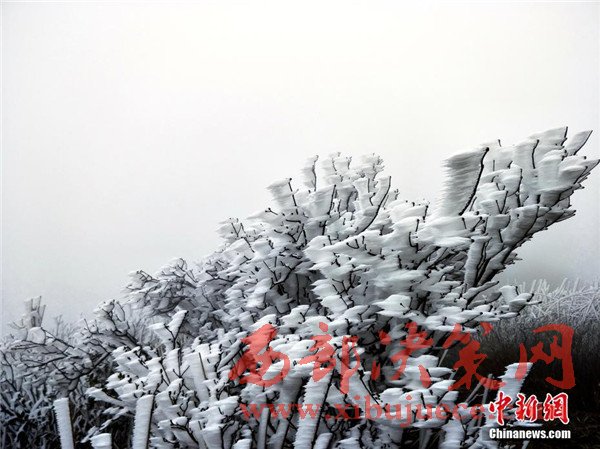 原標(biāo)題:廣東連山縣金子山再降春雪現(xiàn)奇特冰桂
