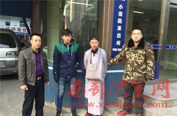 于是有些大媽就跑了買護(hù)身符,而其實(shí)這大媽和翻譯、和尚都是一伙的,小寨路派出所便衣民警發(fā)現(xiàn)了這一點(diǎn),當(dāng)“啞巴”和尚開口說話的一瞬間,便衣民警抓獲了這個假和尚,經(jīng)過訊問假和尚只是四川一無業(yè)人員,600多元的開光護(hù)身符全是從康復(fù)路一塊錢買的。