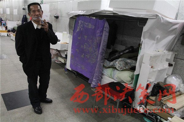 2016年11月27日,湖北武漢,10個流浪漢生活的中南財大地下通道,有床鋪、廚房、座椅、掛鐘、鏡子、自行車、取水處等,每天掃地,定期拖地,干凈整潔,儼然是一個溫馨家園。