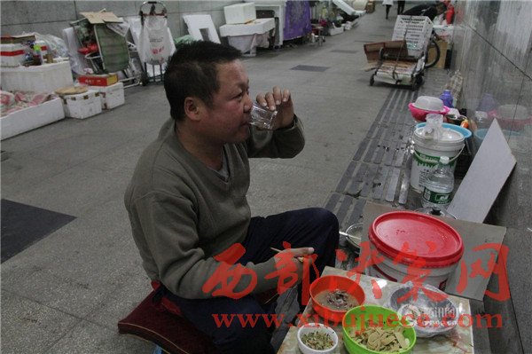 楊樹成的晚飯有葷有素有酒,4個菜。他們白天一般休息,晚上8點出去撿廢品,凌晨2點多再回來。