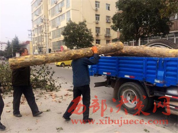 據(jù)了解,砍樹的人講這個地方要做工程,有人請他們把這些樹木砍了。所砍木料被賣給了木材加工廠,現(xiàn)場的車輛及裝車人員都是渭濱區(qū)高家村某木材廠的人員??硺洮F(xiàn)場未發(fā)現(xiàn)有市政和園林環(huán)衛(wèi)部門的管理人員。