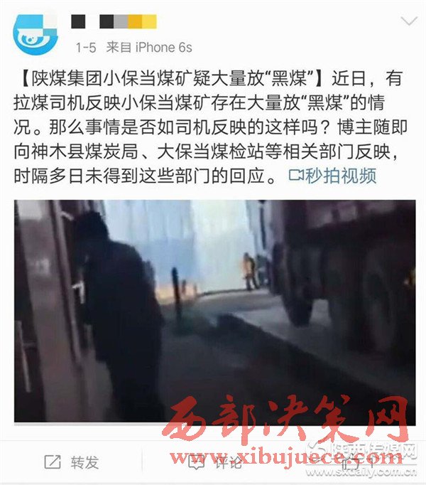 發(fā)稿前,記者又在網(wǎng)上獲悉,1月5日就有網(wǎng)民向神木縣煤炭局和大保當(dāng)煤管站反映過(guò)小保當(dāng)煤礦銷(xiāo)售黑煤的現(xiàn)象,該網(wǎng)民稱此事時(shí)隔多日未得到相關(guān)部門(mén)的回應(yīng)。