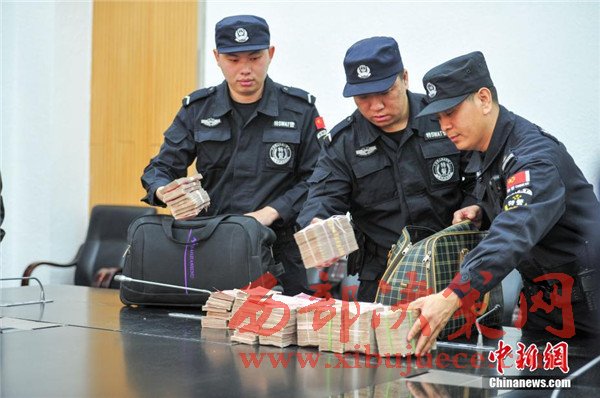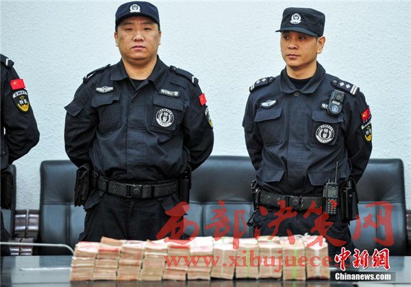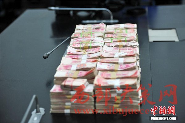 沈陽警方現(xiàn)場(chǎng)展示被盜贓款。
