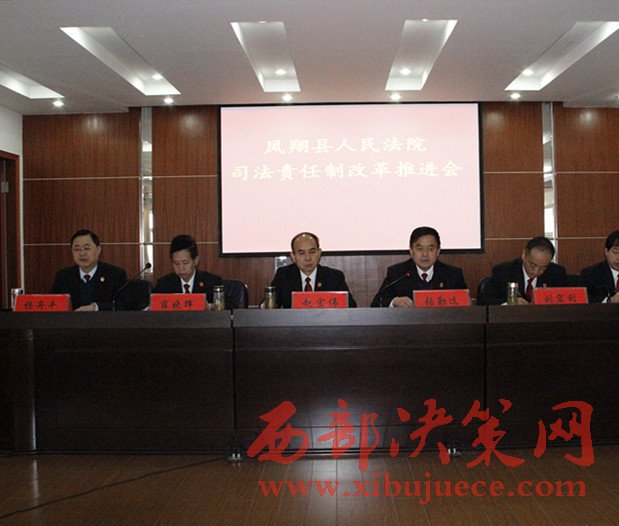 西部決策網(wǎng)-西部大開(kāi)發(fā)(帥華鋒 杜杰 通訊員 晁歡)4月1日上午,鳳翔法院召開(kāi)司法責(zé)任制改革推進(jìn)會(huì),正式推行新的審判權(quán)運(yùn)行機(jī)制,部署安排下一階段司法責(zé)任制改革工作任務(wù),標(biāo)志著該院新的審判權(quán)運(yùn)行機(jī)制全面啟動(dòng),司法責(zé)任制改革工作進(jìn)入新階段。