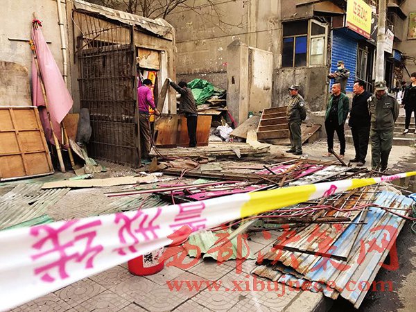 昨日下午5時許,記者在北火巷小區(qū)南口看到,數名工人正在對沿街違章建筑進行拆除。小區(qū)11號樓一沿街人行道上,拉起有數十米長的警戒線,警戒線內被拆下的防盜網招牌等雜物堆積在一旁等待處理。據小區(qū)住戶說,該區(qū)域被個別經營戶長期“占領”擺攤經營的現象終于得到了改善。