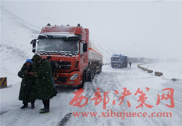 記者從甘肅省阿克塞哈薩克族自治縣獲悉,受冷空氣影響,國道215線當(dāng)金山路段普降大雪,截至4月10日8時,降雪仍在繼續(xù),部分路段積雪厚度達20多厘米,有250余輛大型車輛滯留當(dāng)金山路段。