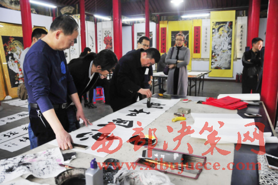 西部決策網(wǎng)-西部大開發(fā)訊(胡玉敏 通訊員 李海其 胡玉軍)4月13日下午,河北省邢臺(tái)市橋西區(qū)知聯(lián)會(huì)、邢臺(tái)市橋西區(qū)政協(xié)第三委員小組,在紫金公園聚義廳開展了書法文化交流活動(dòng)。活動(dòng)特邀我市知名書畫家現(xiàn)場揮毫潑墨,切磋書畫技藝,創(chuàng)作作品20余幅。民盟市委副主委付曉婭,橋西區(qū)政協(xié)主席張建波、區(qū)政協(xié)副主席趙振群、王之良等領(lǐng)導(dǎo)應(yīng)邀參加。
