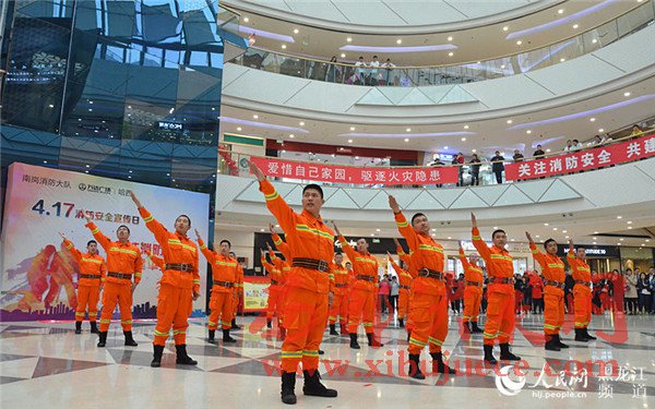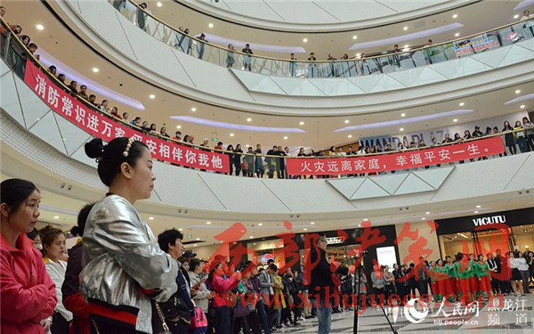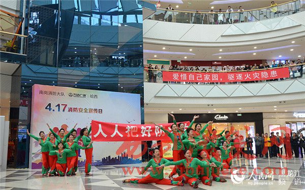 4月17日上午,在哈西萬(wàn)達(dá)廣場(chǎng)以小虎隊(duì)經(jīng)典歌曲《愛(ài)》為背景音樂(lè)的舞蹈拉開(kāi)了哈爾濱市消防支隊(duì)南崗大隊(duì)2017年“4·17”消防宣傳日活動(dòng)的序幕。舞蹈的表演者全部為南崗大隊(duì)的消防官兵,歡快的樂(lè)曲和官兵們整齊的舞蹈動(dòng)作吸引了市民紛紛駐足觀看宣傳活動(dòng)。