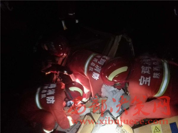 西部決策網(wǎng)-西部大開發(fā)訊(帥華鋒 杜杰 通訊員 史璐峣))4月25日19:09分,寶雞市拓石鎮(zhèn)仙龍村一輛裝載機(jī)側(cè)翻山崖,兩名駕駛?cè)藛T被困。渭濱公安消防大隊(duì)巨福路中隊(duì)接指揮中心接警后立即出動兩輛水罐消防車官兵12人趕赴現(xiàn)場。途中與報(bào)警人聯(lián)系被困人員位于20米深的山崖里,已無生命體征。