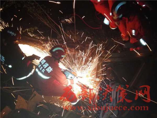 救援指揮員下令先利用剪切鉗對駕駛室A柱進(jìn)行剪切,然后利用無齒鋸對B柱進(jìn)行切割,于21:25分成功將第一名被困人員救出,第二名被困人員位于第一名被困人員下方,并且下半身被卡死無法活動,利用液壓擴(kuò)張器對駕駛室左側(cè)進(jìn)行擴(kuò)張,于21:50分第二名被困人員成功救出,在當(dāng)?shù)卮迕駞f(xié)助下將被困人員利用擔(dān)架抬至路邊移交120,事故現(xiàn)場移交民警后匯報(bào)指揮中心并于23:35分安全返隊(duì)。事故原因正在調(diào)查中。