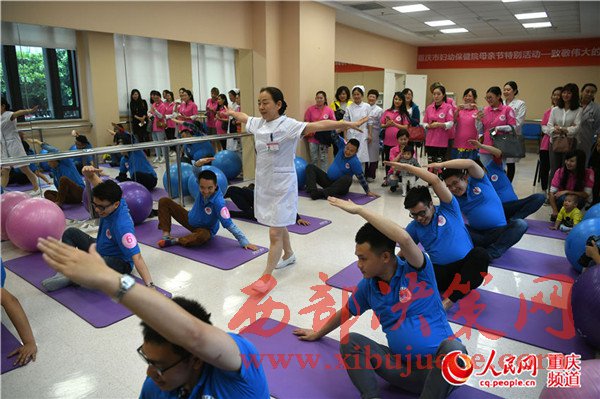 準爸爸們在現(xiàn)場一起練習(xí)孕婦瑜伽。準爸爸們在現(xiàn)場一起練習(xí)孕婦瑜伽。