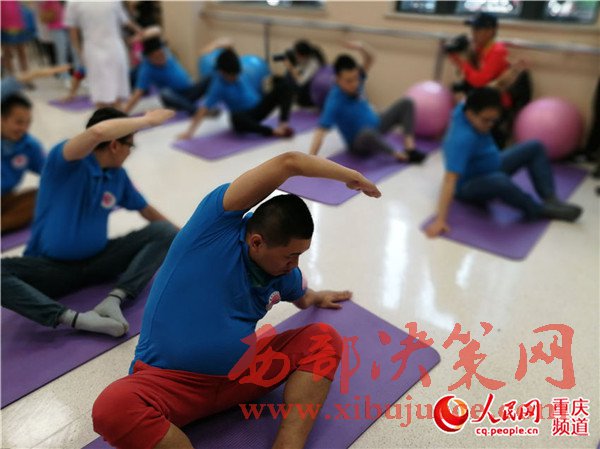 準爸爸們體驗孕婦瑜伽,幾分鐘后,不少人累得氣喘吁吁。